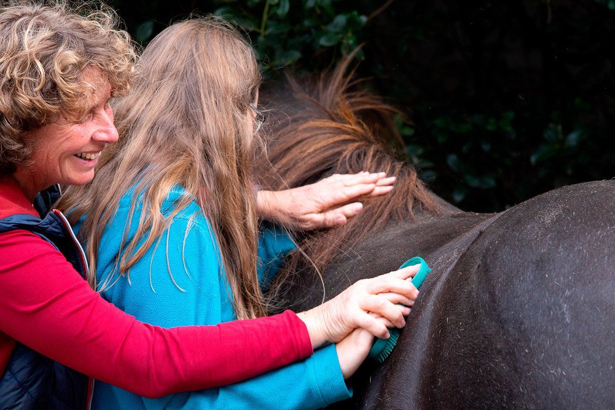Kontaktaufnahme zum Pferd, Aufhalftern, Putzen, Pflegen, sich Tragen lassen, Ausritte auf dem Handpferd, all dies gehört zum HPR.