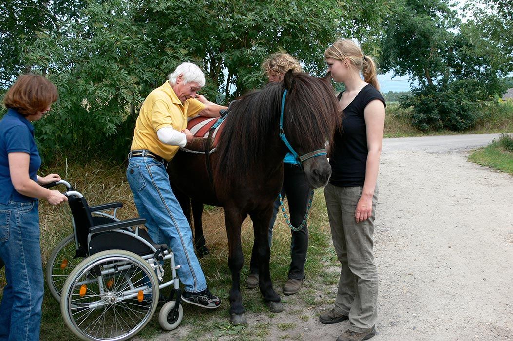 Beim heilpädagogischen Reiten geht es nicht um das sportliche Reiten lernen, sondern um die individuelle Förderung im engen Kontakt mit dem Pferd.